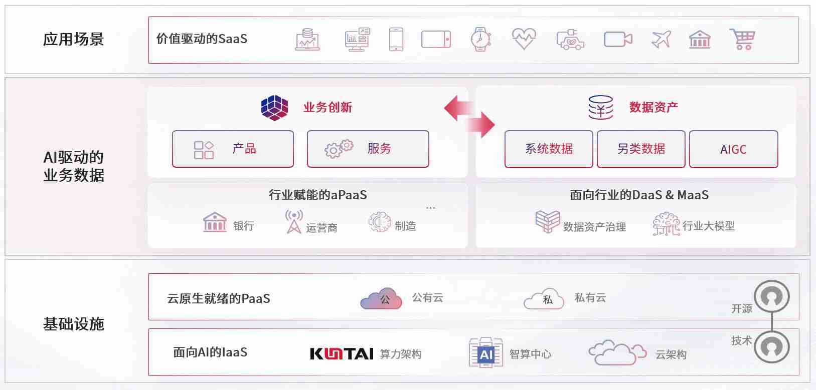 数字时代,,,围绕企业数字化转型的关键要素,,,,尊龙数码开创性的提出数云融合战略和技术体系框架,,,,着力在云原生、、数字原生、、、、AI原生和信创产业上架构产品和服务能力,,,为处在不同数字化转型阶段的快消零售、、汽车、、、金融、、、医疗、、政企、、教育、、、运营商等行业客户提供泛在的敏捷IT能力和融合的数据驱动能力,,,构建跨界融合创新的数字业务场景和新业务模式,,,助力企业级客户建立面向未来的核心能力和竞争优势,,全面推动社会的数字化、、智能化转型升级。。